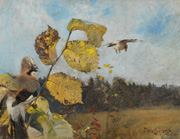 ↑ブリューノ・リリエフォッシュ《カケス》1886年 油彩、カンヴァス スウェーデン国立美術館蔵 Photo: Cecilia Heisser / Nationalmuseum→同作品会場風景